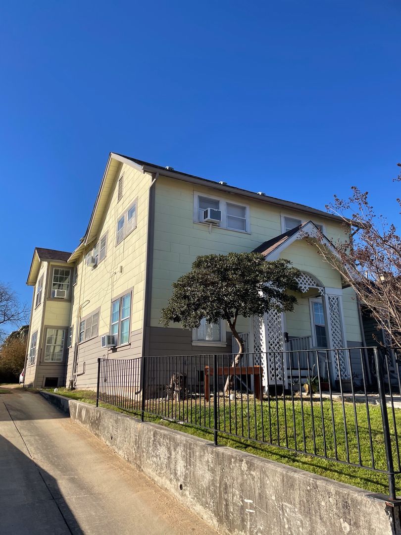 Welcome to this Eclectic Hidden Gem 1/1 - a unique and charming one-bedroom, one-bathroom apartment located in the heart of San Antonio, TX. This upstairs apartment is nestled in the historic Monte Vista neighborhood, a vibrant and walkable community near North St. Mary's. The apartment is conveniently located within walking distance to the Pearl and the Riverwalk, offering a great variety of dining, shopping, and entertainment options. The apartment is also near Trinity University and SAC, making it an ideal location for those seeking to balance work, study, and leisure. The apartment has been fully renovated, featuring easy-care wood floors and spacious rooms filled with natural light, creating a bright and welcoming atmosphere. This apartment has window units with dual AC/heat, ensuring your comfort throughout the year. Off-street parking is included for your convenience. Experience the historic charm of this fourplex while enjoying the modern comforts of city living. This is a cute and quiet complex with great location! Ask about rent and deposit specials!