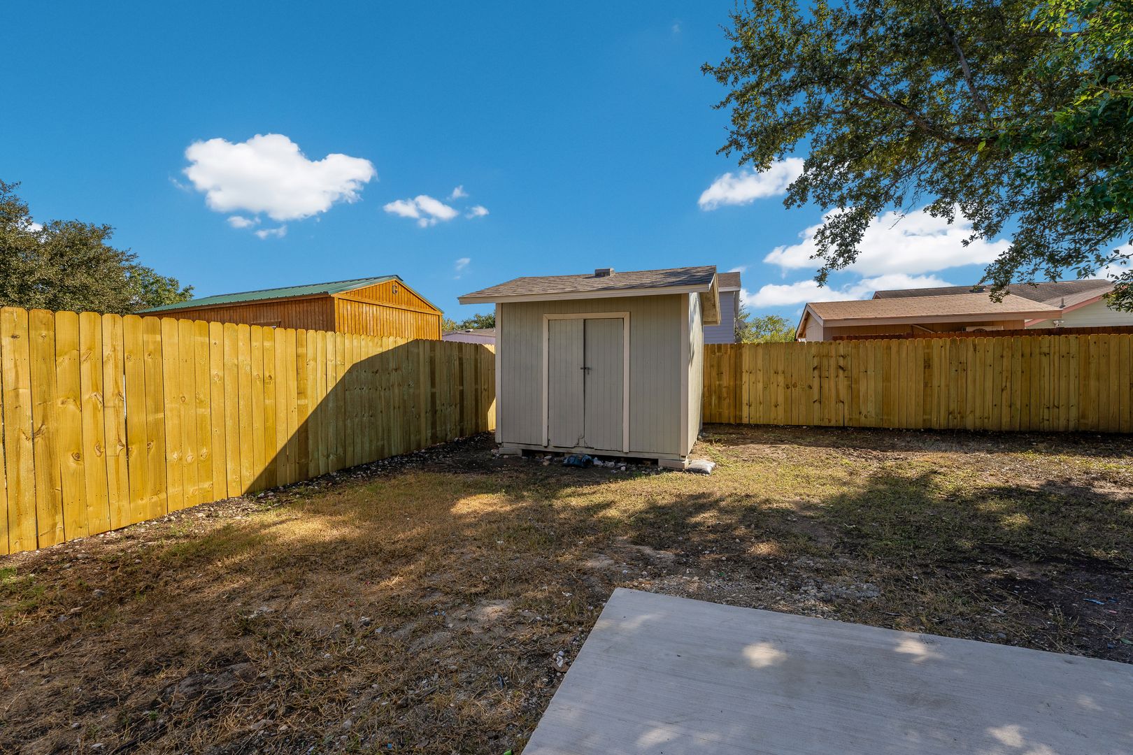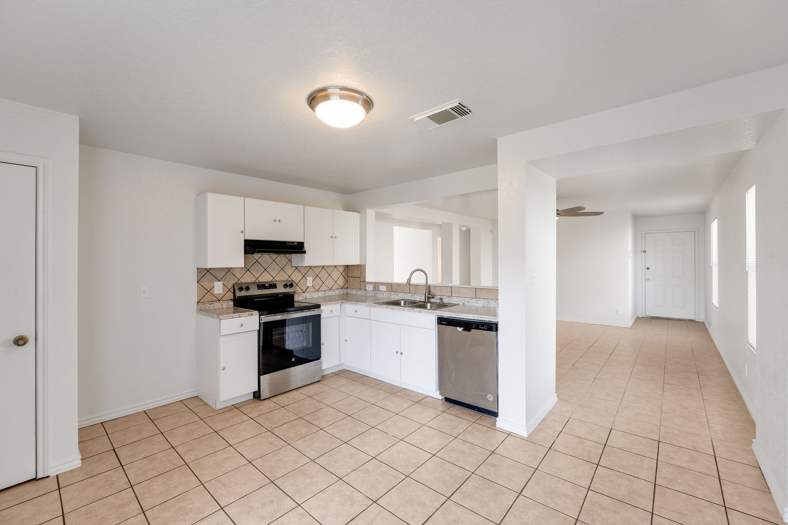This charming 3-bedroom, 2-bath home boasts ceramic flooring throughout, fresh paint, and brand-new appliances. The open floor plan offers a spacious eat-in kitchen, along with separate living and formal dining areas perfect for entertaining. Bedrooms have walk-in closets and ceiling fans. Custom tile work in both bathrooms. Nice size laundry room with Full Size Washer/ Dryer connections. Outside, you'll find a large yard with mature trees, providing both beauty and shade. This home is ready for you to move in and enjoy!