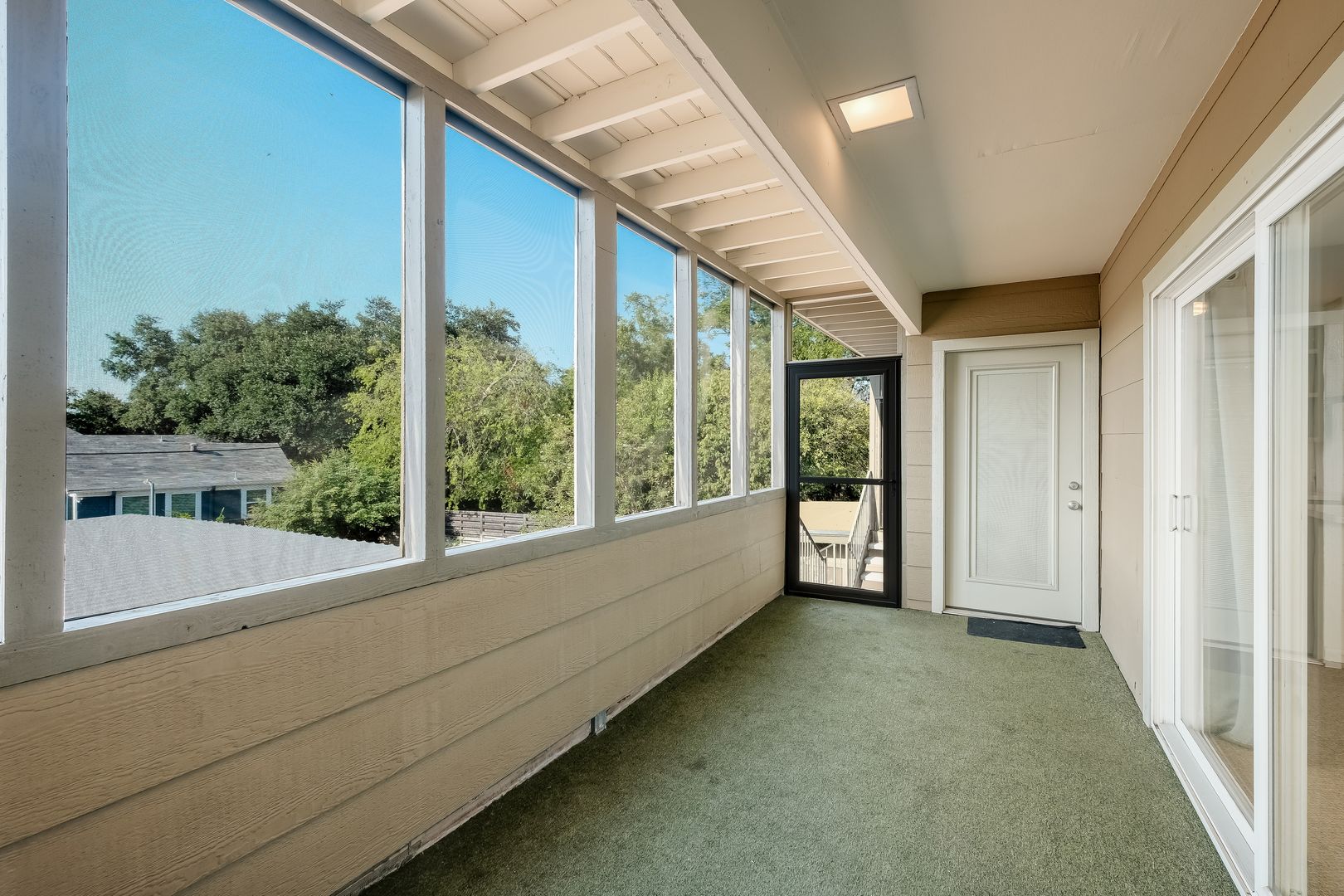 Welcome to this charming mid-century modern apartment located in the heart of San Antonio, TX. Nestled in the historic Monte Vista neighborhood, this one-bedroom, one-bathroom upstairs apartment offers a blend of modern convenience and historic charm. The spacious rooms are bathed in natural light, highlighting the condo's unique features. The kitchen is well appointed with a large center island, refrigerator, and stove/range. Unique natural fiber (jute) carpeting adds lots of character. The convenience continues with a washer and dryer in the unit. Enjoy the outdoors from your private screened-in porch. This corner lot unit is pet-friendly, requiring only a pet deposit with no monthly pet rent. The central AC/Heat ensures comfort throughout the year. A covered carport with assigned parking is a bonus in South Texas. Its prime location near Trinity University and central San Antonio offers easy access to the city's amenities. Experience the best of San Antonio living in this beautifully renovated Mid-Century Charmer.